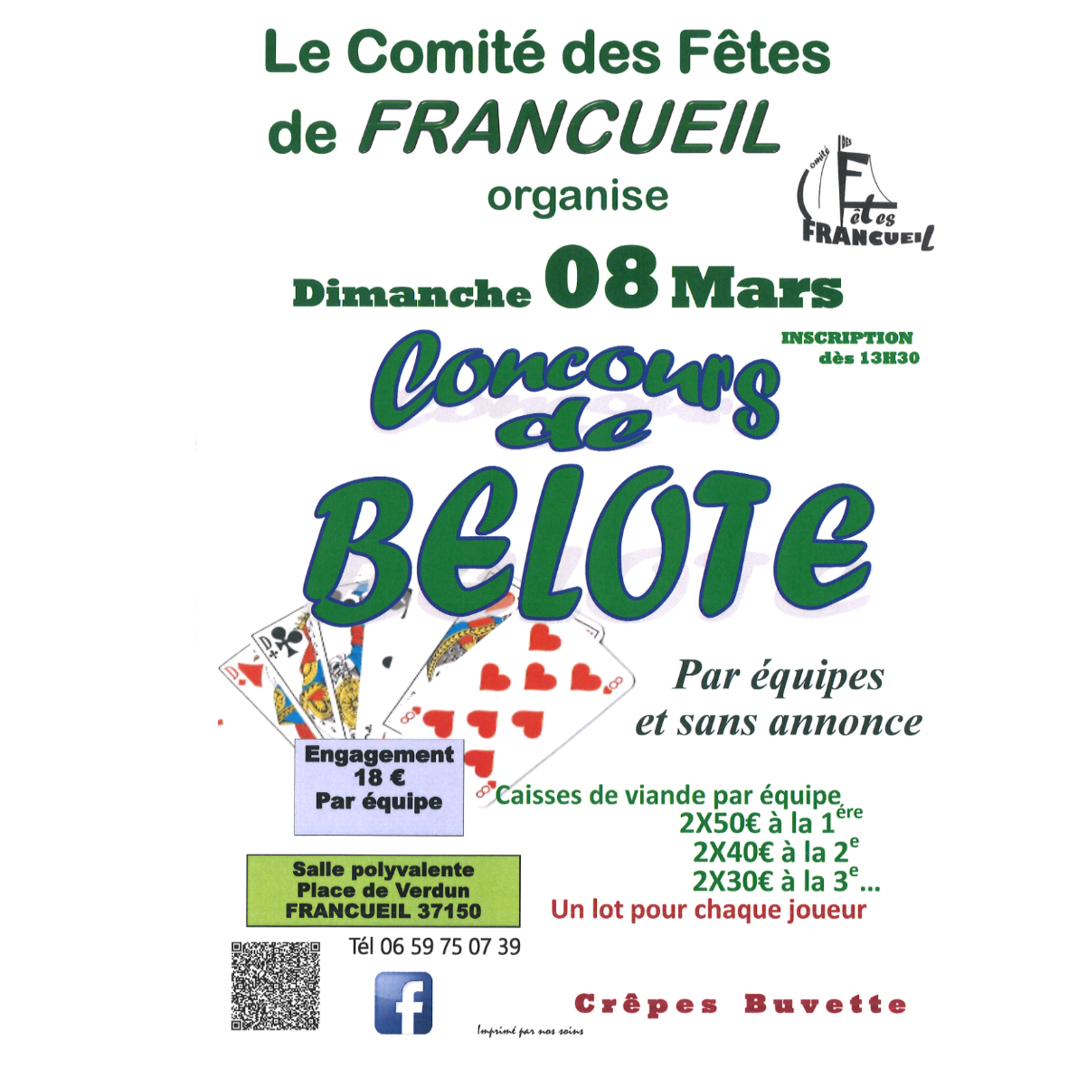 Le Comité des fêtes de Francueil organise son traditionnel concours de belote le dimanche 8 mars 2026