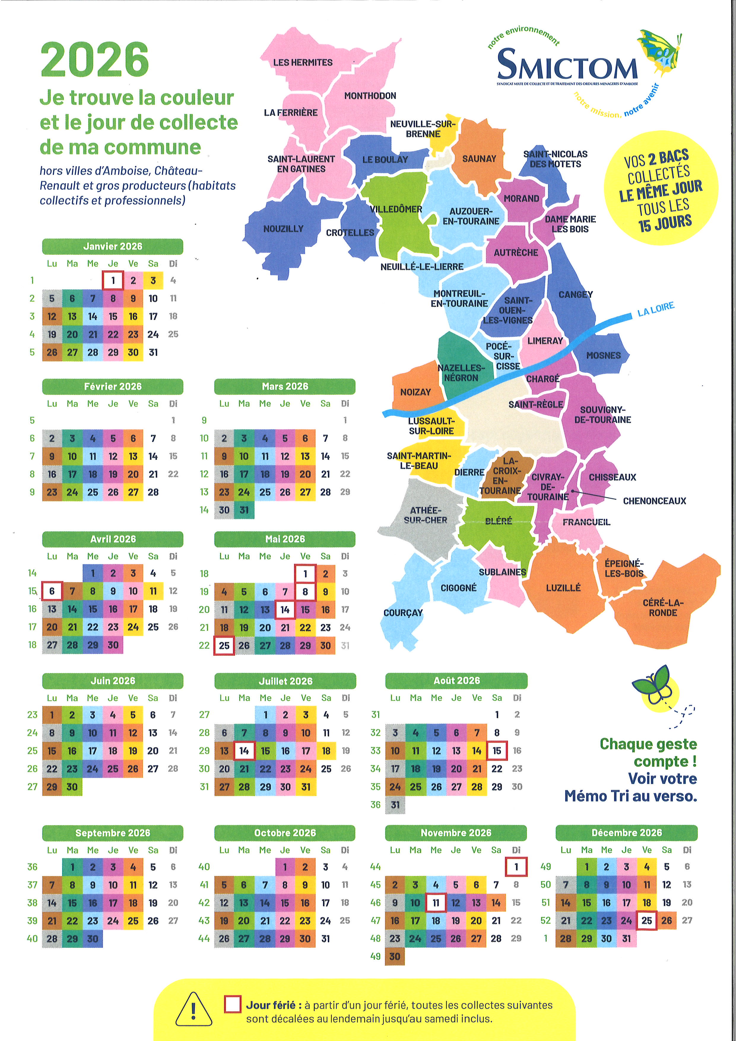 A partir d'un jour férié, les collectes sont décalées au lendemain jusqu'au samedi inclus.