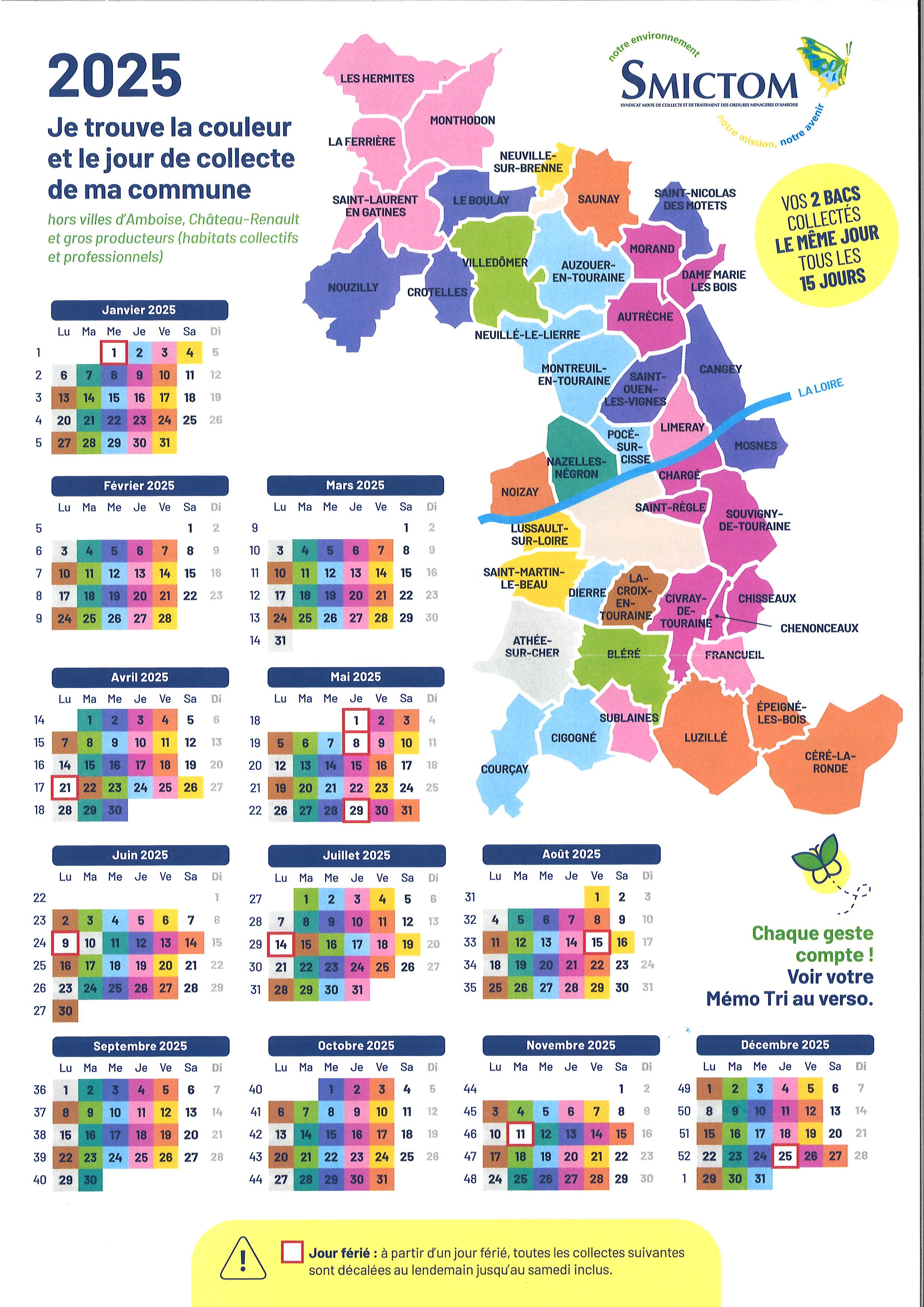 A partir d'un jour férié, les collectes sont décalées au lendemain jusqu'au samedi inclus.