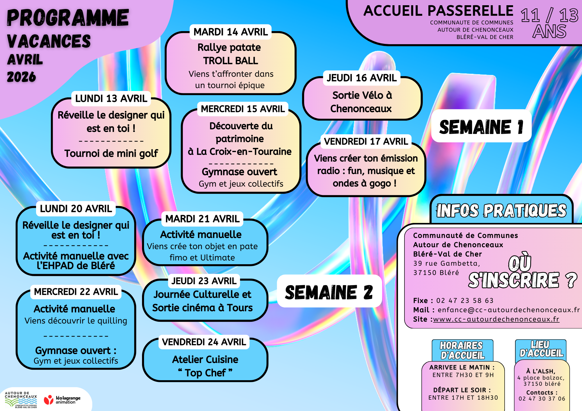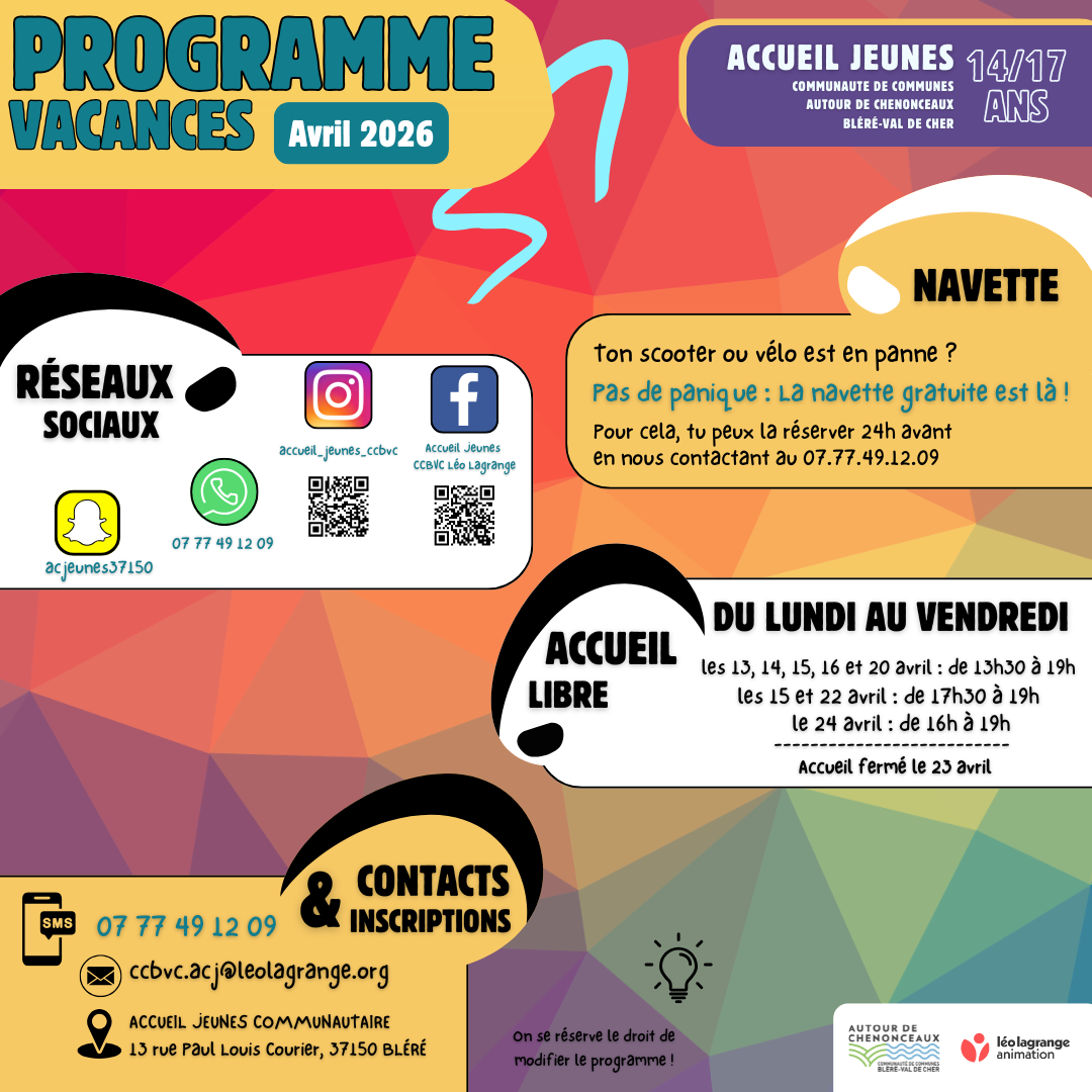 Le Programme des vacances d’avril de l’Accueil Passerelles de Bléré ;